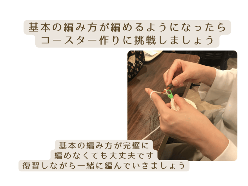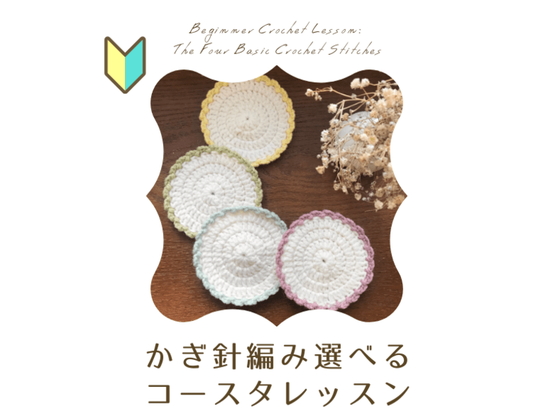 【120分】基本の編み方ができたら次はこれ!初めての編み小物作りに最適です🔰基本の4つの編み方でできるコースターづくり