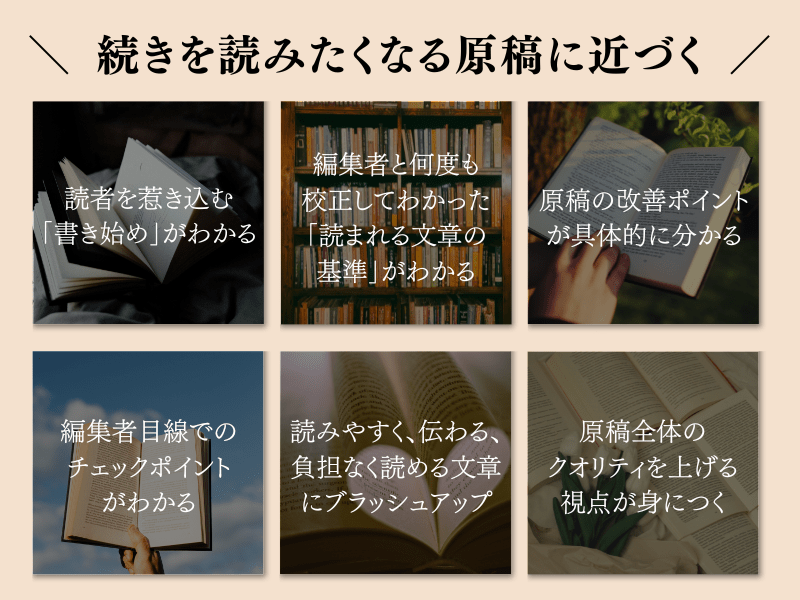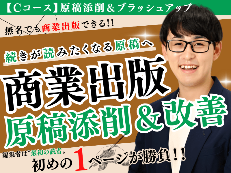 ※ まだ原稿がなく、構成段階で相談したい方はAコース(URLは以下に記載)を推奨いたします。本講座(Cコース)よりもお安くサービスをお受けいただけます。