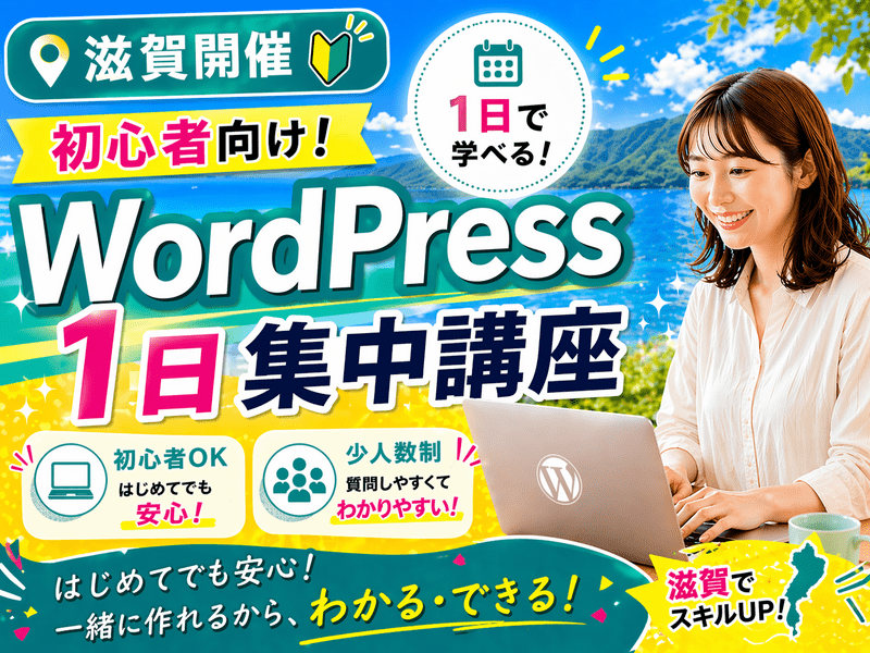 サーバやドメイン設定、ワードプレス構築方法、1日講座ではホームページ公開までできるようになります。