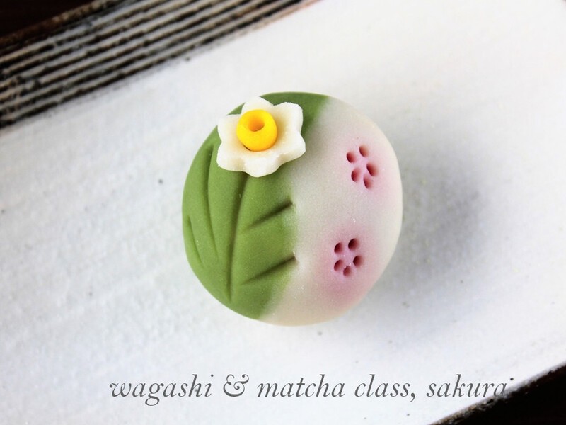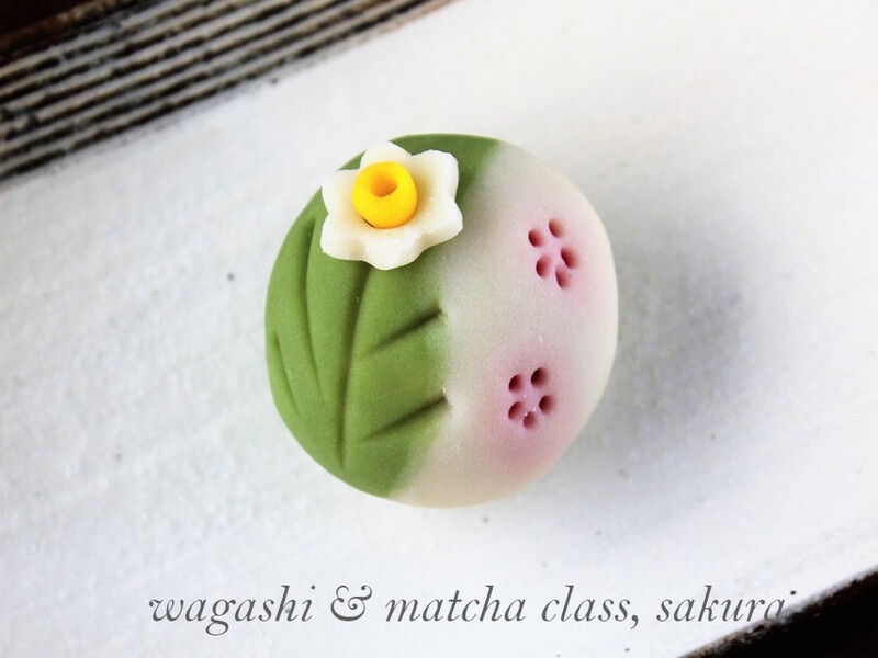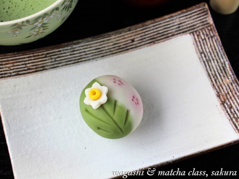季節の練り切りの和菓子「早春の庭」を作ります。美味しい和菓子が自分で作れるなんて~とびっくり!簡単なお抹茶の点て方もお教えしますよ~。