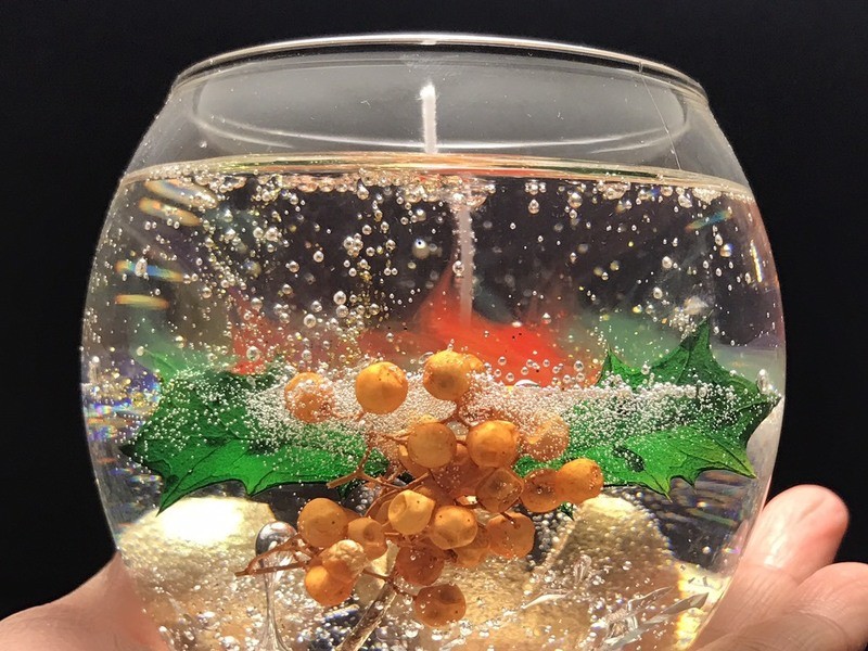 お好きなドライフラワーと香りを選び、灯すとキラキラするボタニカルキャンドルを作ります