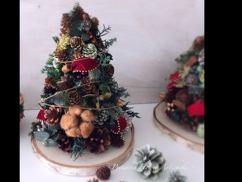 来年も使えるオリジナルのツリーをたっぷりの木の実などを使って作ります