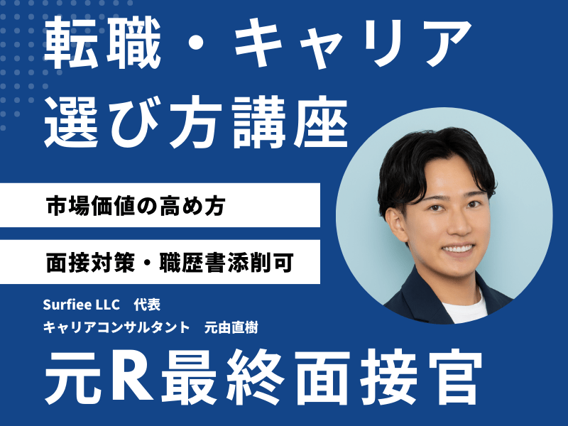友人の紹介で元由さんにご相談しました。他エージェントではうまく進まなかった中、元由さんの面談と講座を通じて、自己分析や書類添削、面接対策まで徹底的にサポートしてくださいました。特に過去の経験の棚卸しを通じて、自分の強みや意思決定の軸を明確にできたことが大きな成果でした。SaaS業界への転職という目標も実現でき、心から感謝しています。
