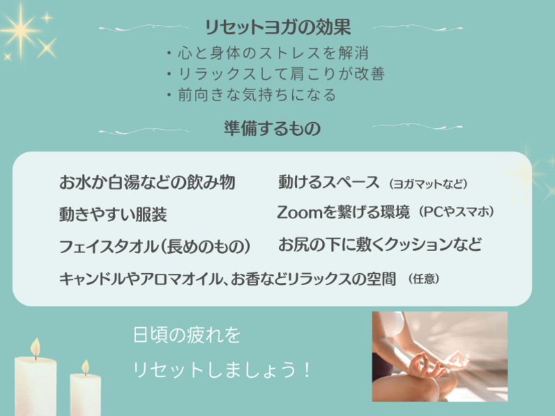 内容は中盤に、筋トレのような動作が入り、運動不足の私としてはとても辛かったのですが、終わってみると体がほぐれててスッキリしました。