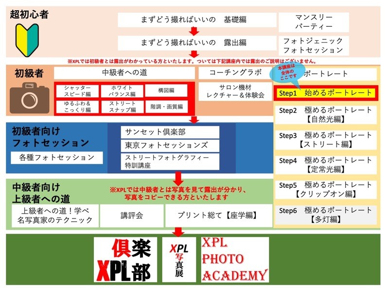 XPLでは段階を踏んだポートレートの講座をご用意しております。順番通りにお受けください。