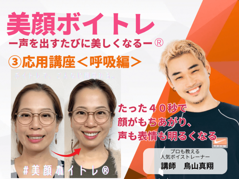鳥山先生の講座を受講し、復習を兼ねて毎日ボイストレーニングを進めていくと、 いつの間にか、顔のシワが薄くなっていることに驚かされます!