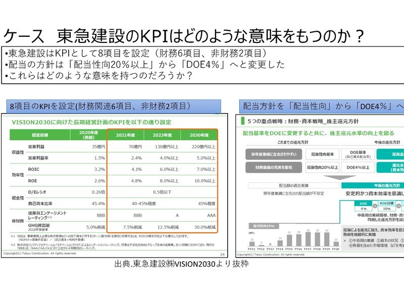 ROEやROAといった資本効率の向上のみならず、温暖化対策やエンゲージメント向上、具体的な株主への還元方法などを取り入れている企業も増えてきました。特に近年では配当性向からDOE基準へと移行する動きも見られます。そうした最先端の事例を取り上げ、これからの経営計画の在り方を学びます。
