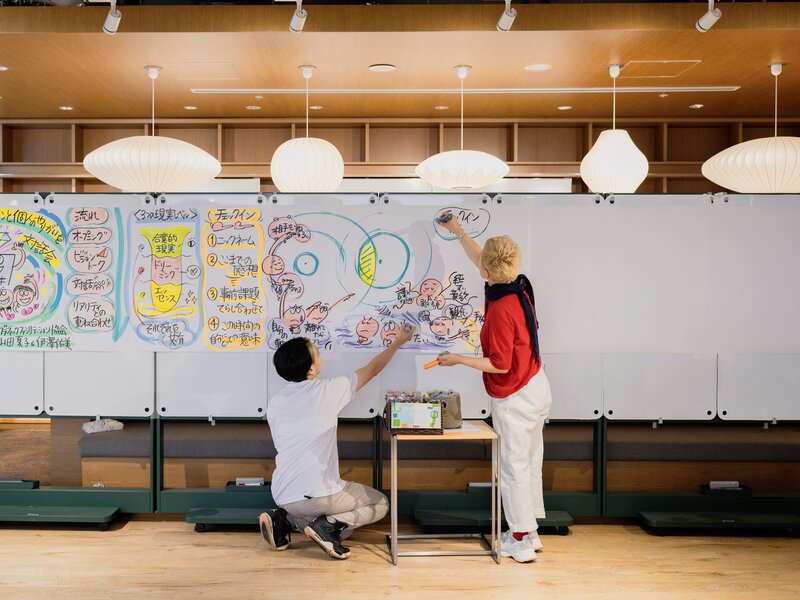 グラフィックファシリテーションがどのように活用できるのか、体験しながら理論も学べ、ファシリテーション能力の高まる講座でした。絵が苦手でも問題なく学べるのでオススメです。