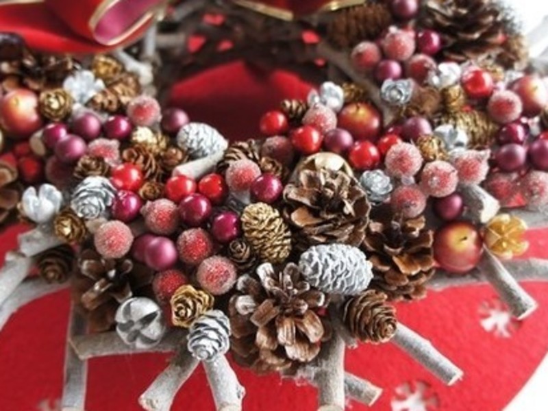 長く厳しい冬を温かみのある赤やワインカラーをベースにしたリースを飾ってクリスマスを楽しみましょう