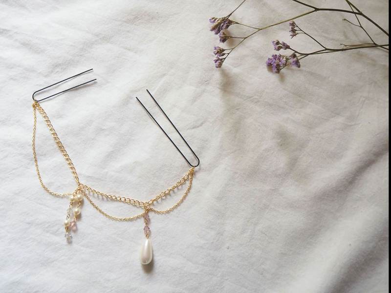 華奢な2連チェーンと揺れるパールでおしゃれなヘアアクセサリーづくり!華やかな見た目ですが初心者の方でもばっちりサポートするので安心です!