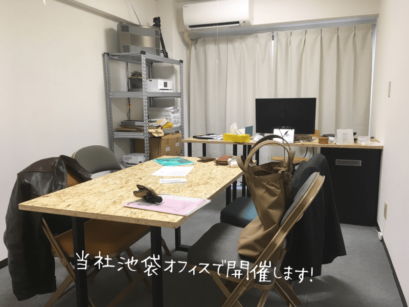 意識高い系オフィス(様々な備品をDIYで自分で作りました)で受講型セミナー方式で行い、個別の質問も承りその場で回答します。
