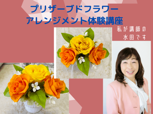 2014年1月 息子の嫁へのブーケプレゼントをキッカケにプリザーブドフラワーに興味を持ち、ライフスタイルコーディネート協会プリザーブドフラワー認定講座を受講し、プリザーブドフラワー認定講師となり、教室開催や各地でのイベントに出店、プリザーブドフラワーの認知活動を展開