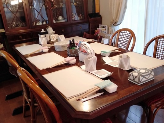 初めてのカルトナージュはむっちゃ達成感がありました。欲しいサイズでいろんなものを作ってしまえるというカルトナージュ。先生のおうちのように手作りカルトナージュでいっぱいの部屋にしたくなりました。