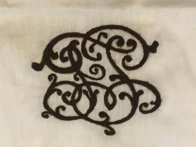 第一回の続きです。エコバッグにチャコペンでなぞって好きなだけ刺繍します。