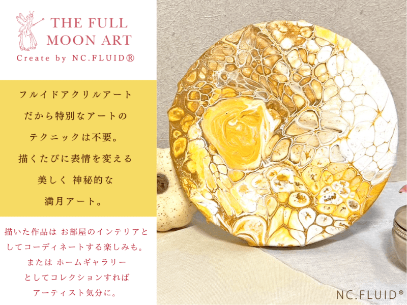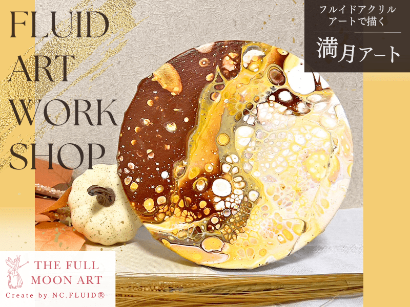 色彩豊かなフルイドアクリルアートで満月をイメージしながら絵を描きませんか?完成作品はインテリアとしてお飾りいただけます♪