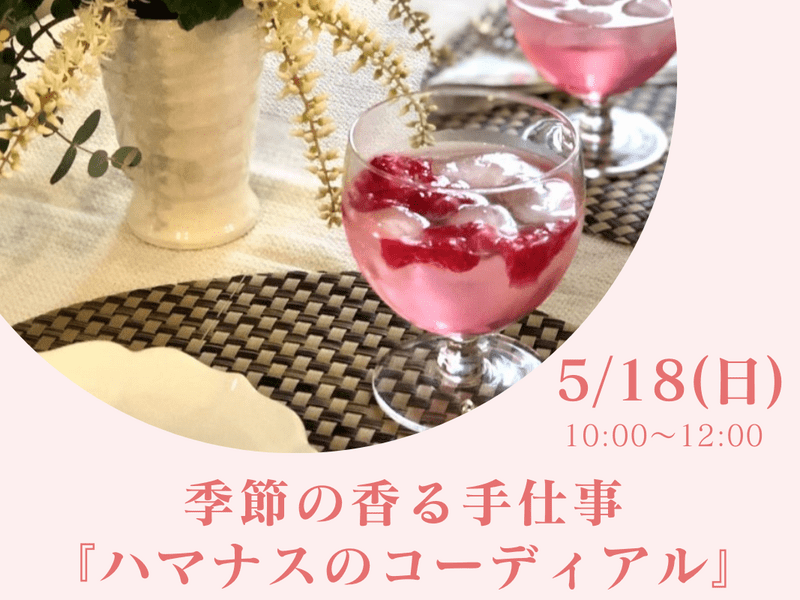 前夜に開催を知り1日限定のため急遽予約しました 大変希少なフレッシュハマナスの芳香と美しい薔薇色を存分に活かしたコーディアル、高品質アロマオイルのブレンドも楽しめるバスソルトを作りました