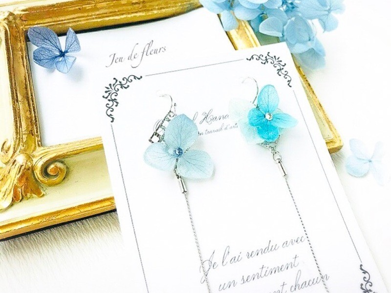 10種類以上の紫陽花の中から世界に一つだけの人気急上昇のレジンフラワーアクサリーを作ります♡少人数のレッスンなので初めてでも安心です