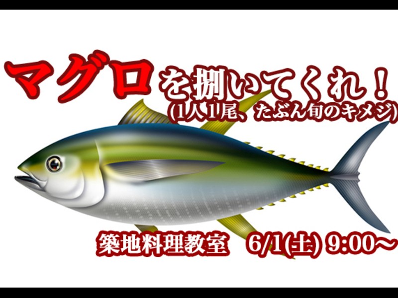 マグロの捌いちゃいましょ! もちろん、1人1尾です! 通常の魚は3枚おろしですが、マグロは5枚おろしで捌きます。