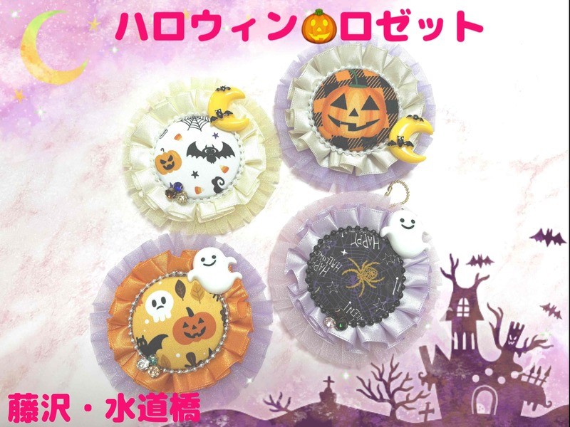 🎀ハロウィン柄やクリスマス柄などお好みの生地で可愛いロゼットを2個作成します♪
