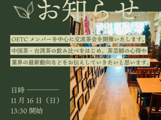 はじめての方にも、 古樹茶をはじめ、中国茶・台湾茶の魅力をお楽しみいただけるよう、基礎知識やお茶の淹れ方などをまなべる茶会です。