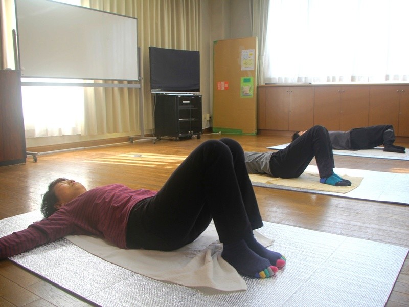 仰向けや横向きなど寝転がった体勢、または座った体勢などで講師の指示に従って簡単な動きをゆっくり丁寧に行って頂きます。