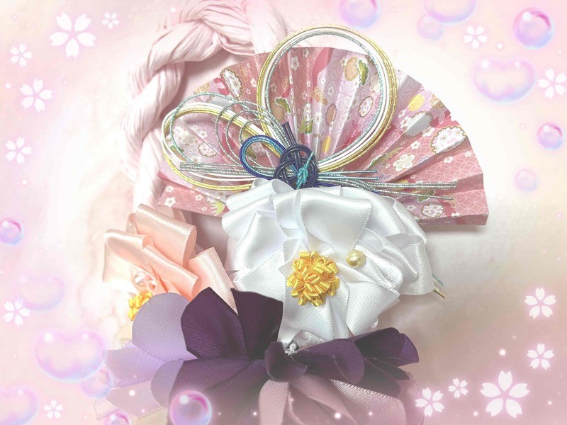 🎀飾りの扇子のパーツはお好みの色を当日選べます。