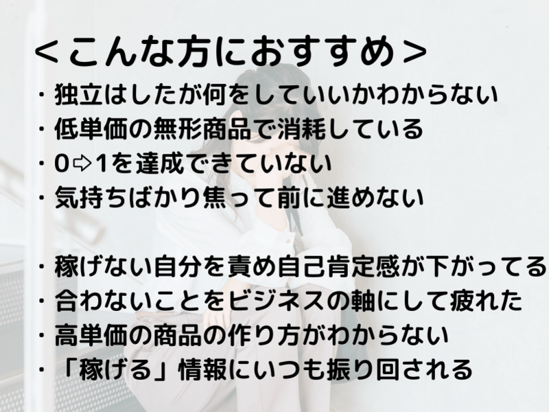 ・低単価の無形商品しかなく、収益化ができていない