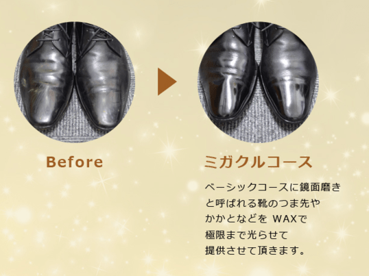 極限まで靴を輝かせるサービスを低価格で提供している。