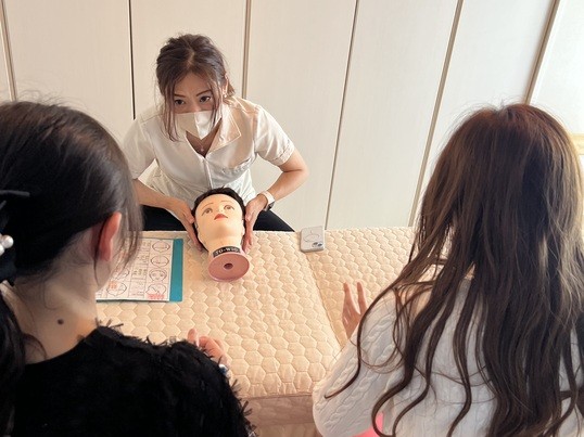 約40個のツボ押し、頭、首のコリをほぐして究極の癒しに導くヘッドマッサージ。3時間のマンツーマンレッスンで約30分のマッサージを習得します。