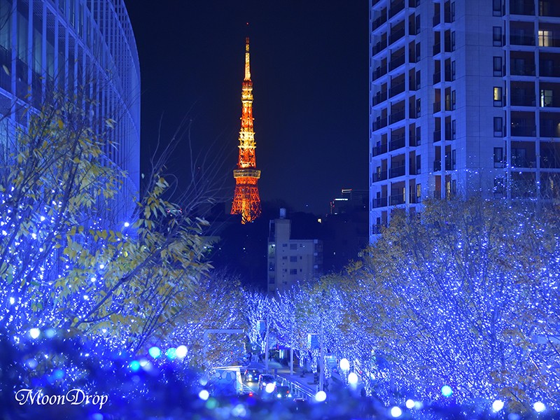六本木ヒルズのブルー系、ミッドタウンのゴールド系、都会らしいスタイリッシュなイルミネーションフォトが撮れると思います。