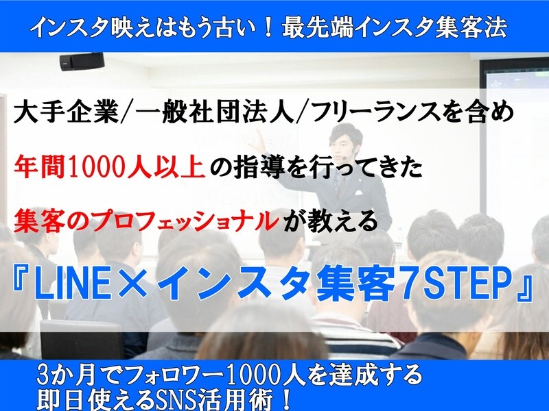 最先端インスタ集客法 大手企業/一般社団法人/フリーランスを含め 年間1000人以上の方へ指導を行ってきたSNS集客術!