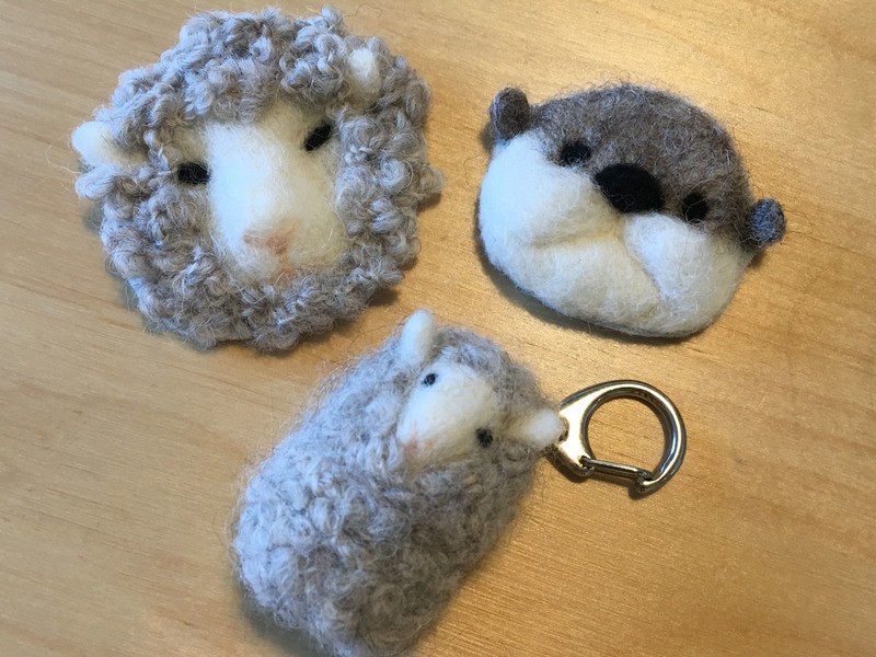 ニードルを見るのも持つのも初めての初心者中の初心者です。手汗が酷いとか老眼で見えづらいとか不安だらけでしたが先生の「全然大丈夫!」の明るいひと言からのスタート。あのフワフワの羊毛がどんどん形になっていく事に感動すら覚えました。色々質問させていただいたりおしゃべりしたりの楽しい時間でした。出来上がった作品は先生の羊さんに比べると一癖も二癖も有りそうなちょい悪オヤジの顔ですが、それはそれでお気に入り!!(笑)次回はぜひ羊毛フェルトのシートを体験してみたいと思っています。