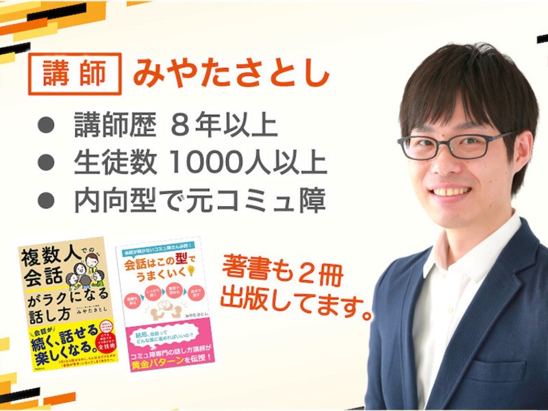 内向的な性格にマッチした会話のコツを厳選! コミュ障さんが抱える悩みを丁寧に解消♪ 時間は長めなぶん、実践練習もたっぷりできて着実に成長⭐︎