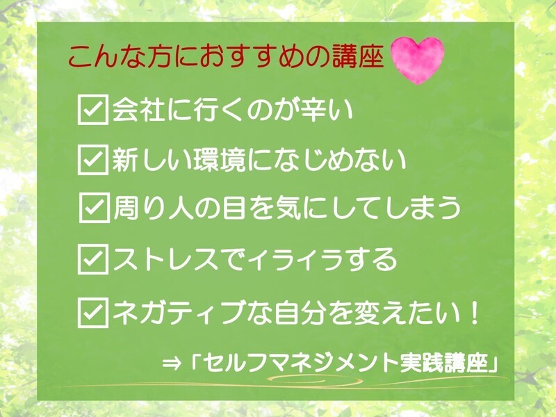 イライラ、モヤモヤしてしまう方にオススメの講座!