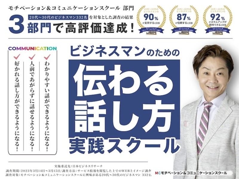 【社会人向け:コミュニケーションスキルをアップする】①直ぐに実行できる率90%:「人前で話すと緊張する」「話が散漫になる」「相手のニーズが掴めない」等を解決する即実行可能な具体的なスキルをご紹介します。②お客様満足度90%以上:「お客様の満足度」結果に拘るコミュニケーショントレーナーが多数所属。過去5万人のセミナー参加者から「わかりやすかった!」と大好評。③低価格... +続きを読む
