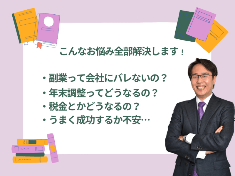 と悩みは尽きないと思います。そこで税理士である僕が皆さんの副業に関するお悩みを解決し、みなさんの副業を全力でサポートしていきたいと思います。