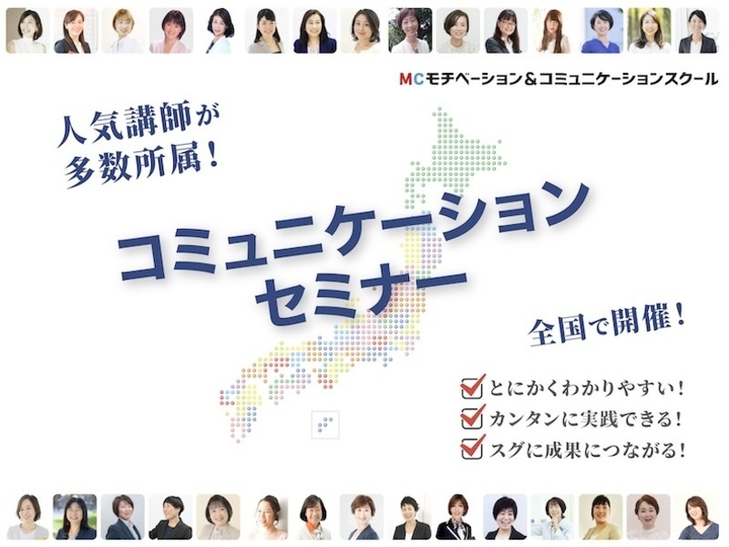 「お客様の満足度」結果に拘るコミュニケーショントレーナーが多数所属。過去5万人のセミナー参加者から「わかりやすかった!」と大好評。
