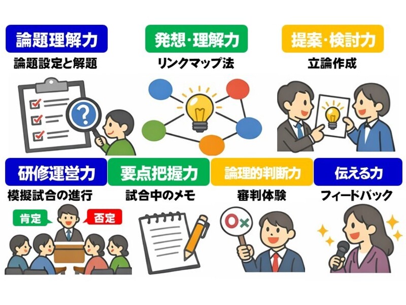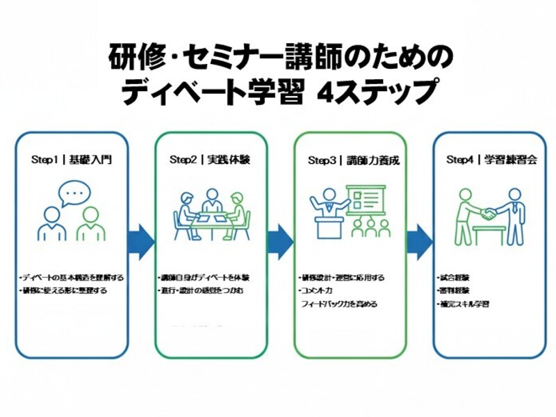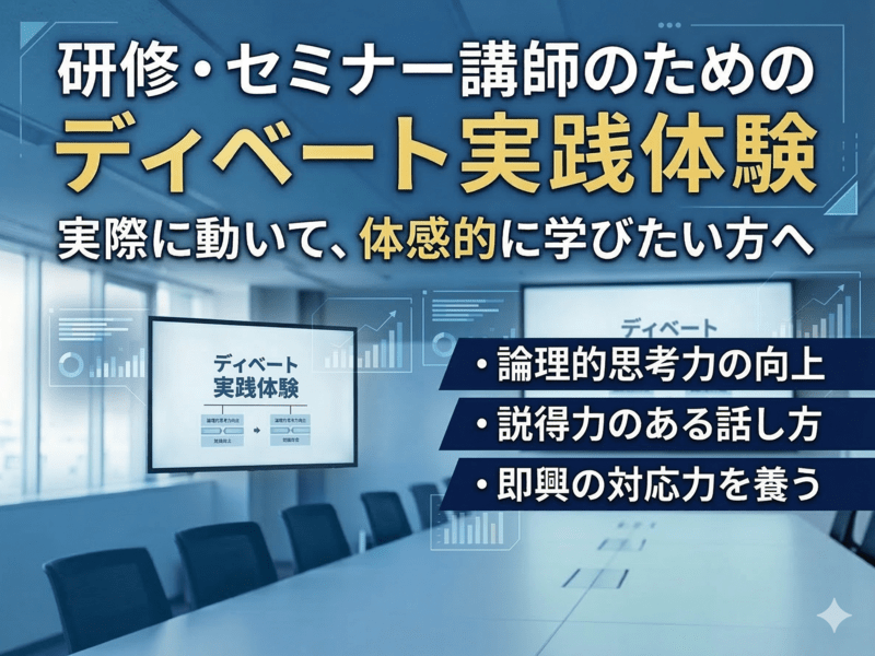 研修教育関連会社に入社後、ディベートトレーナー養成講座など関連講座、日本初のディベートトレーナー資格試験を企画実施し、ディベートの普及に貢献。