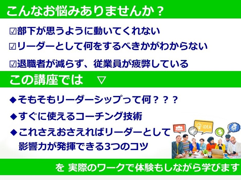 離職の低下、コーチングというキーワードに興味があり、またどのようにリーダーシップを発揮すればいいのか自信が持てなかったので受講しました。