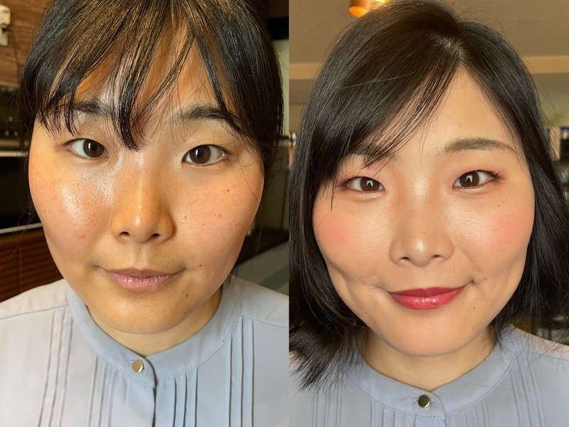 せっかくメイクをしていただいたので、帰りに教えて頂いた化粧品の買い物をしていたら、某化粧品メーカーの方に「メイク素敵ですね。うちで一緒に働きませんか?」とスカウトされました。もうビックリ!さすがプロのメイクですね。
