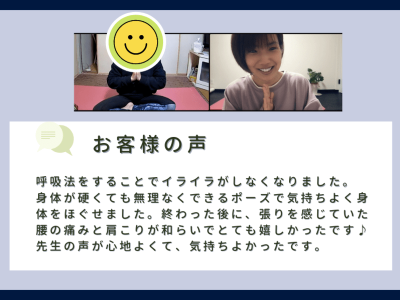 じっくりヨガをさせてもらい、すごくリフレッシュすることができました。