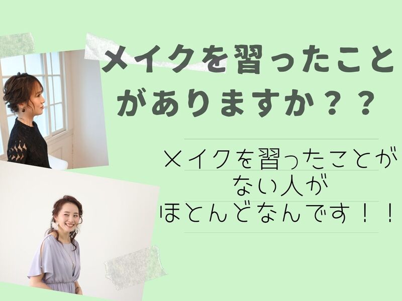 メイクのことを、丁寧にわかりやすく教えてくれました!メイクの順番も、自分がやっていたのとは違い、驚いたことと、眉毛も形をつくるのが難しかったのですが、描き方や道具の使い方も教えてもらい、とても良かったです!先生も話しやすくいい方ですよ〜♪