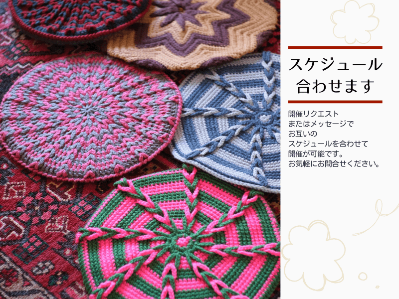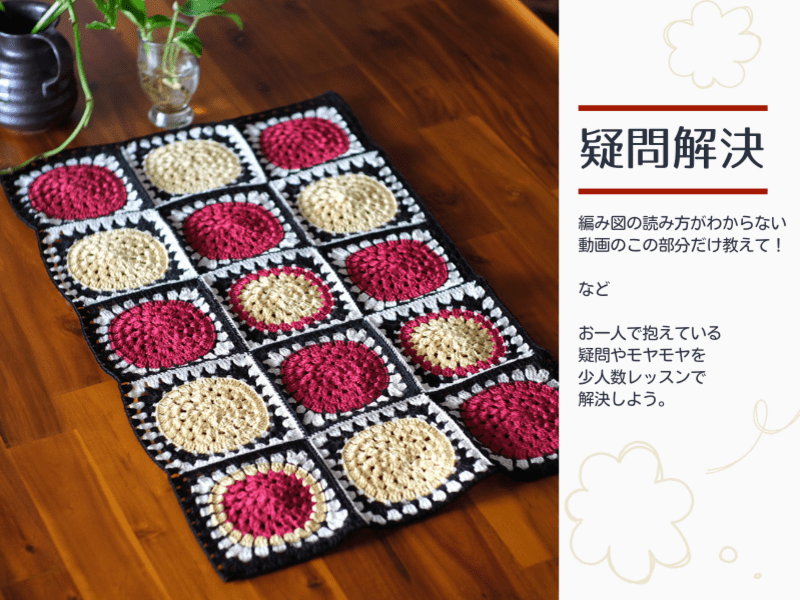 かぎ針の疑問に幅広く対応するQ&A形式の少人数の対話型レッスンです。