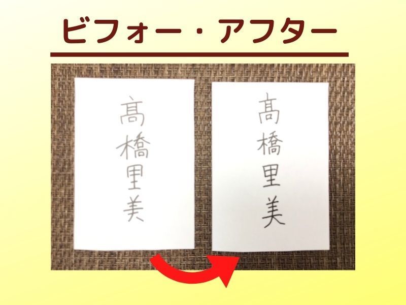 自分の名前をお手本として書いていただいているのを見られるので、自分の文字との違いや、こうしたらもっと素敵な文字になるということがわかりやすく、勉強になりました。