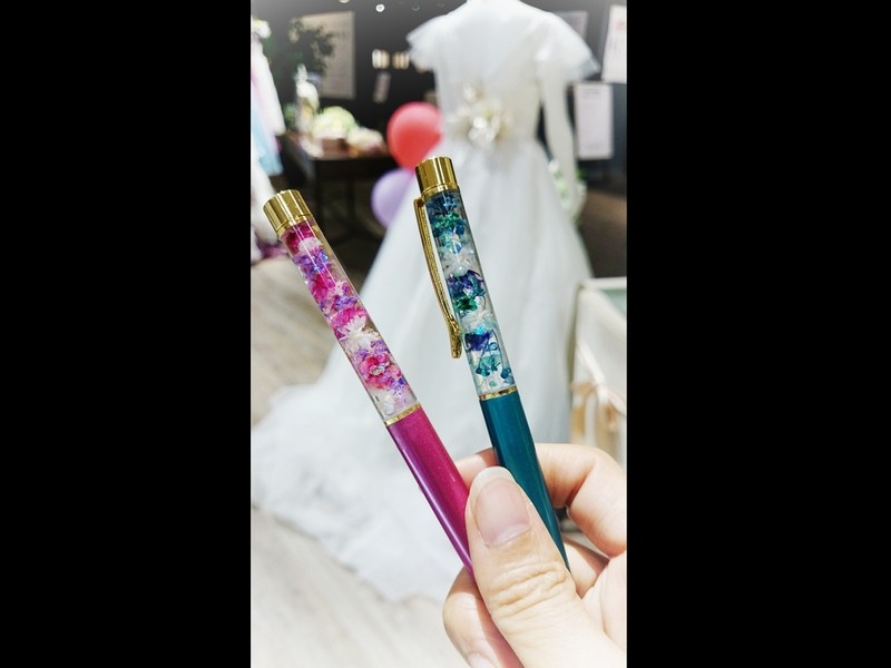 前回ハーバリウムボールペンを作らせてもらいましたが、また作りたくなったので再来しました。ボールペンの土台の色やタイプが沢山あって嬉しかったです。今回も楽しく過ごせました。ありがとうございました。