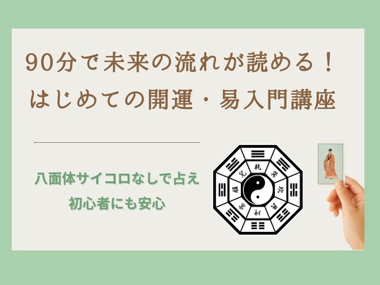 もともとは渡邉先生の易の上級講座の前に,一から教えて頂く方が良いという考えと,90分・5000円のお試し(先生ごめんなさい)という考えで受講しました。実際に受けてみて,知識ゼロの受講者に対する心配りも感じられると同時に,易占を行うことを通して,入門講座でありながら,その奥深さの一端までを見ることができた魅力的な講座でした。先生の解釈のアドバイスも素晴らしかったです。
