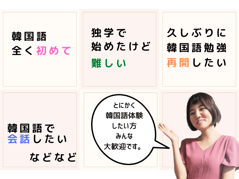 私自身も高校生の頃からずっと日本語の学習者で、今では日本で暮らしています。語学学習の悩みや、日本語と韓国語の仕組みを熟知していますので、日本の方が躓きやすいポイントを意識しながら授業を行なっております。