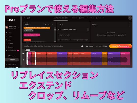 ・Suno Proプランで使える機能の使い方をお伝えします。