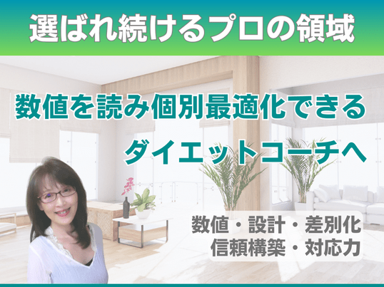 数値を正しく読み、柔軟な設計と差別化戦略まで担えるプロへ。本格志向の完全マンツーマンのダイエットコーチ育成プログラム