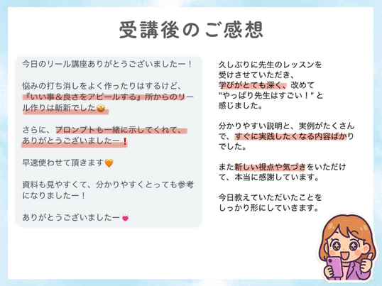 他の先生の自己紹介動画を見させてもらって、いいなー。私も作りたいなと思った矢先、企画してくださり、ご予約させて頂きました!